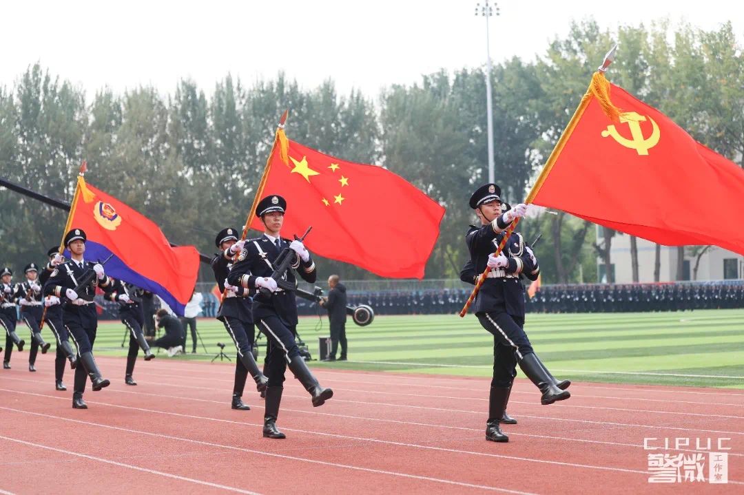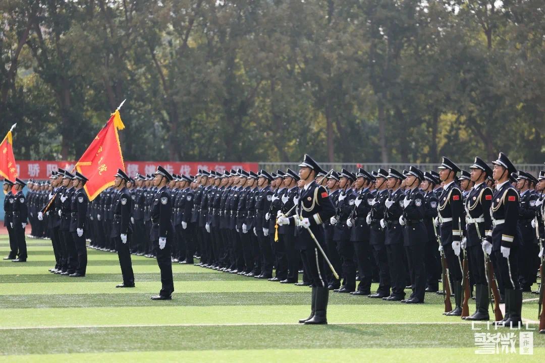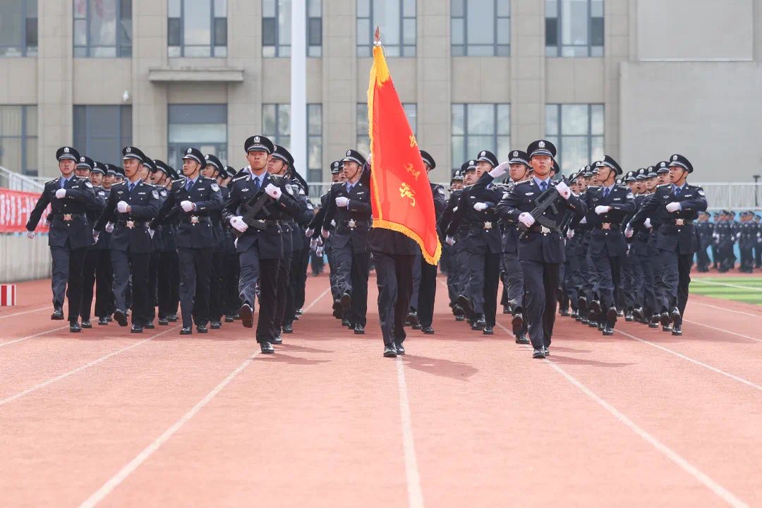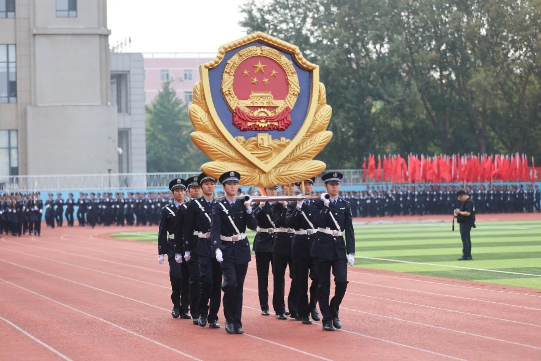 警务训练汇报大会上,旗帜方阵、警徽方阵、持枪方阵等受阅方阵依次接受检阅。同学们警容严整、神采飞扬、步伐铿锵、口号嘹亮,体现了新生优秀的队列素养,展现了昂扬向上的精神风貌。