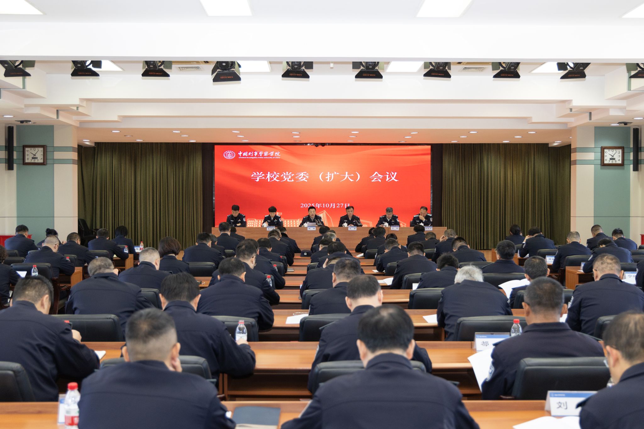 10月27日,学校在办公楼第四会议室召开党委(扩大)会议,传达学习党的二十届四中全会精神。党委书记赵斌主持会议,全文传达了中国共产党第二十届中央委员会第四次全体会议公报,就学校学习贯彻工作进行安排部署。党委副书记、院长王册传达了公安部党委会暨理论学习中心组学习(扩大)会议和部直属机关传达学习党的二十届四中全会精神干部大会精神。在沈学校领导班子成员出席会议,校属各单位班子成员参加会议。
