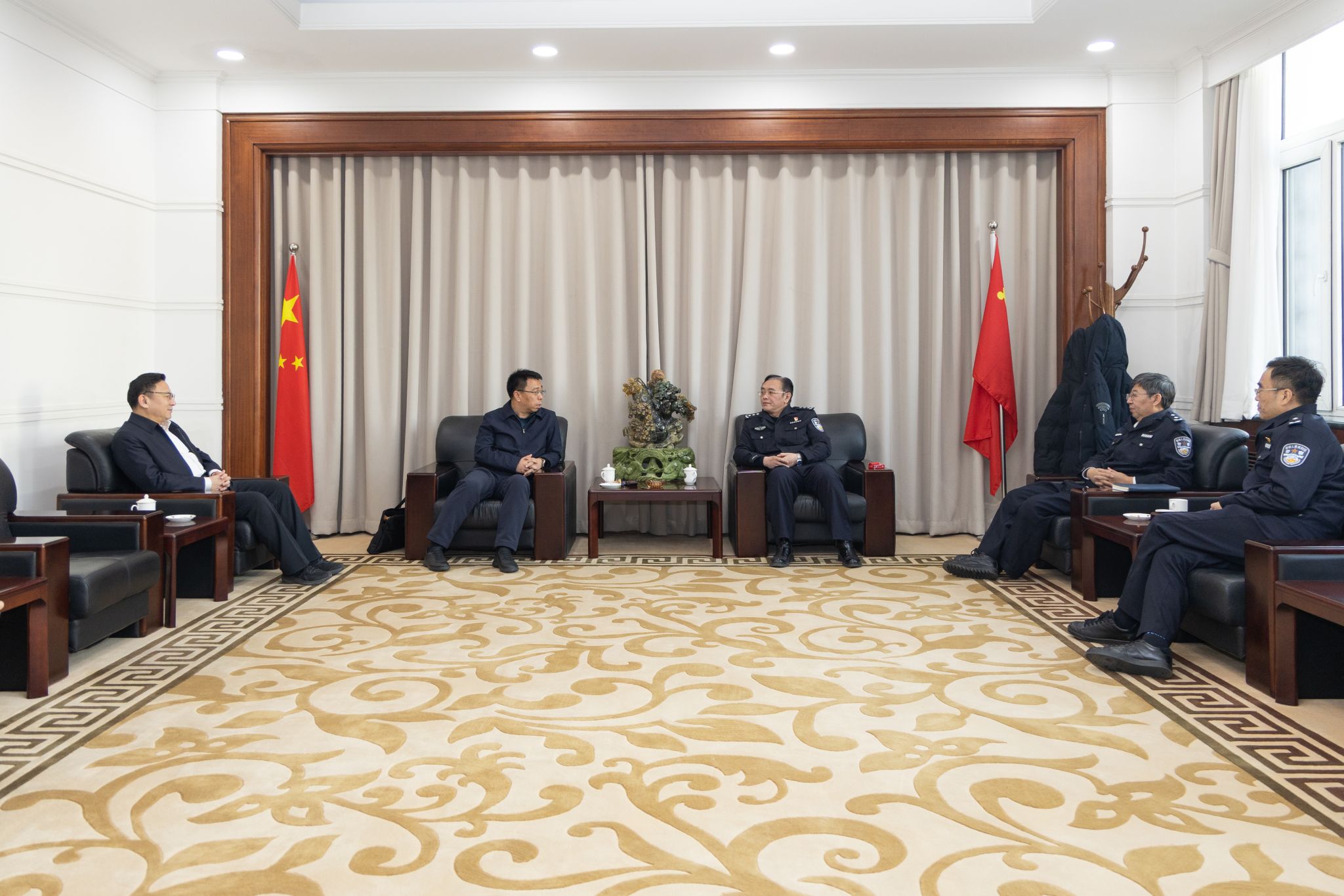 会见中,王册院长代表赵斌书记及全体教职员工向胡纯钰主任一行来校调研交流表示欢迎,向中国石油纪检监察部门对学校的信任和支持表示感谢。王院长指出,学校常年为公安机关输送了大批优秀人才,有着坚实的专业基础。纪检监察工作虽有别于公安业务,但其本质同样是维护公正、捍卫纪律的崇高事业,二者在价值追求上高度契合,在办案理念上相融相通。学校将会全力支持中国石油纪检监察队伍建设工作,提供智力支持与培训资源,推动双方在人才培育、业务研讨、实践教学等领域的深入合作。