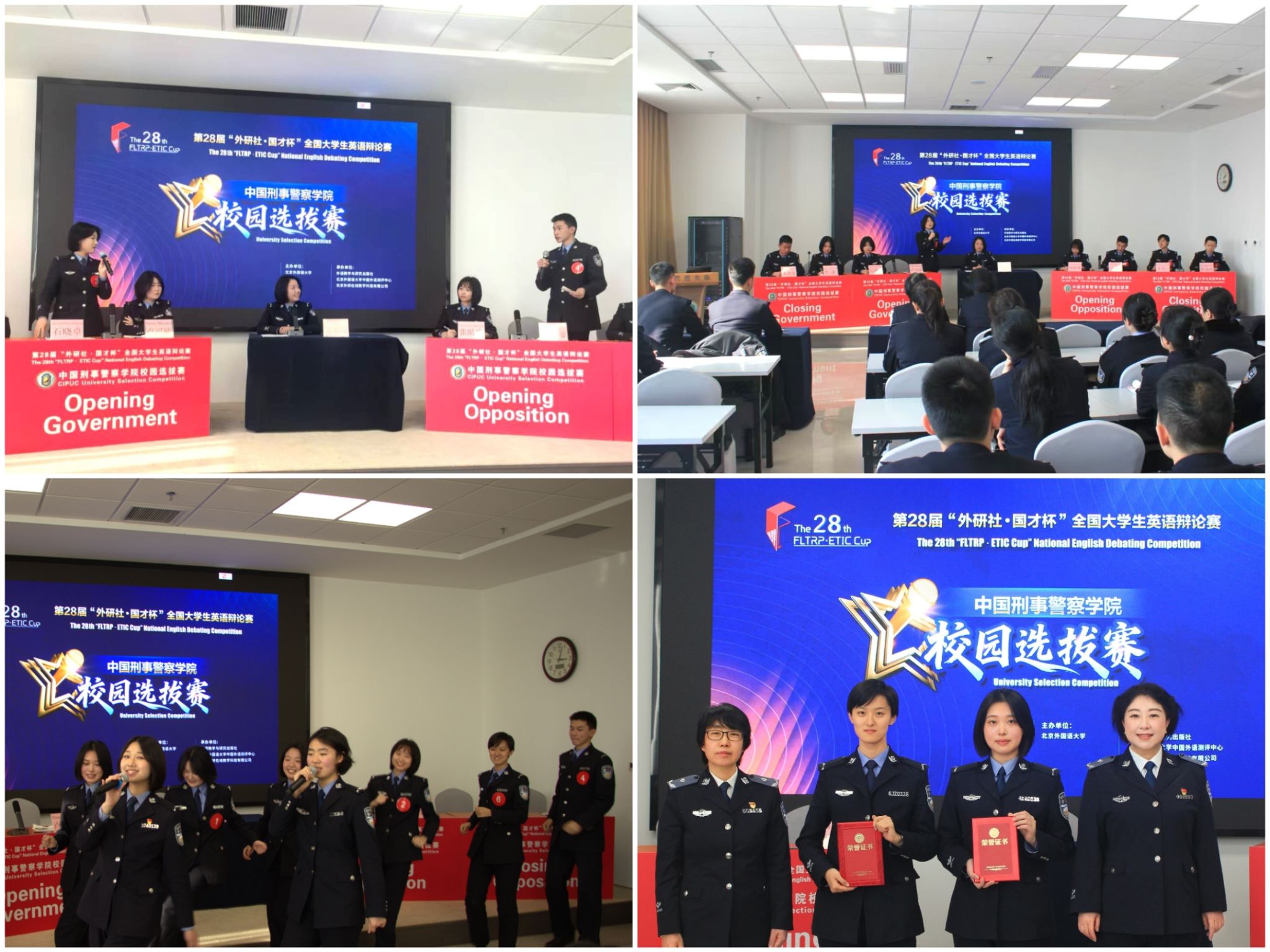 公共基础教研部外语教研室组织本次校园选拔赛的初赛、复赛和决赛。经过层层筛选与激烈角逐,八位同学脱颖而出,组成四支辩论队,晋级决赛。他们以英语为剑,以思辨为盾,展示了预备警官的国际视野与逻辑思维能力。