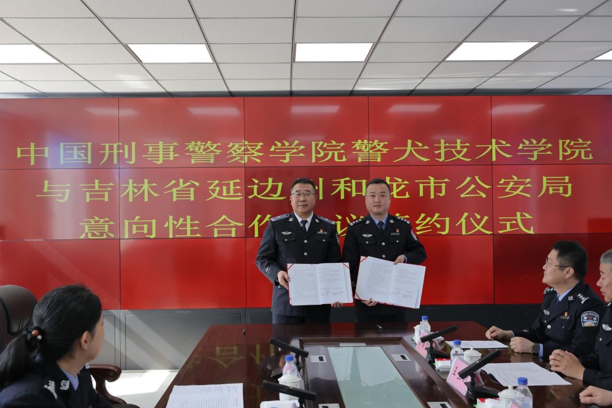 为进一步优化警犬技术学院“教、学、研、练、战”一体化人才培养模式,3月17日,中国刑事警察学院警犬技术学院与吉林省延边州和龙市公安局意向性合作协议签约仪式在和龙市举行。警犬技术学院党委书记、副院长郭杨,吉林省公安厅刑侦局警犬基地副处长王敬松,和龙市副市长、公安局局长吕智梁等出席仪式。
