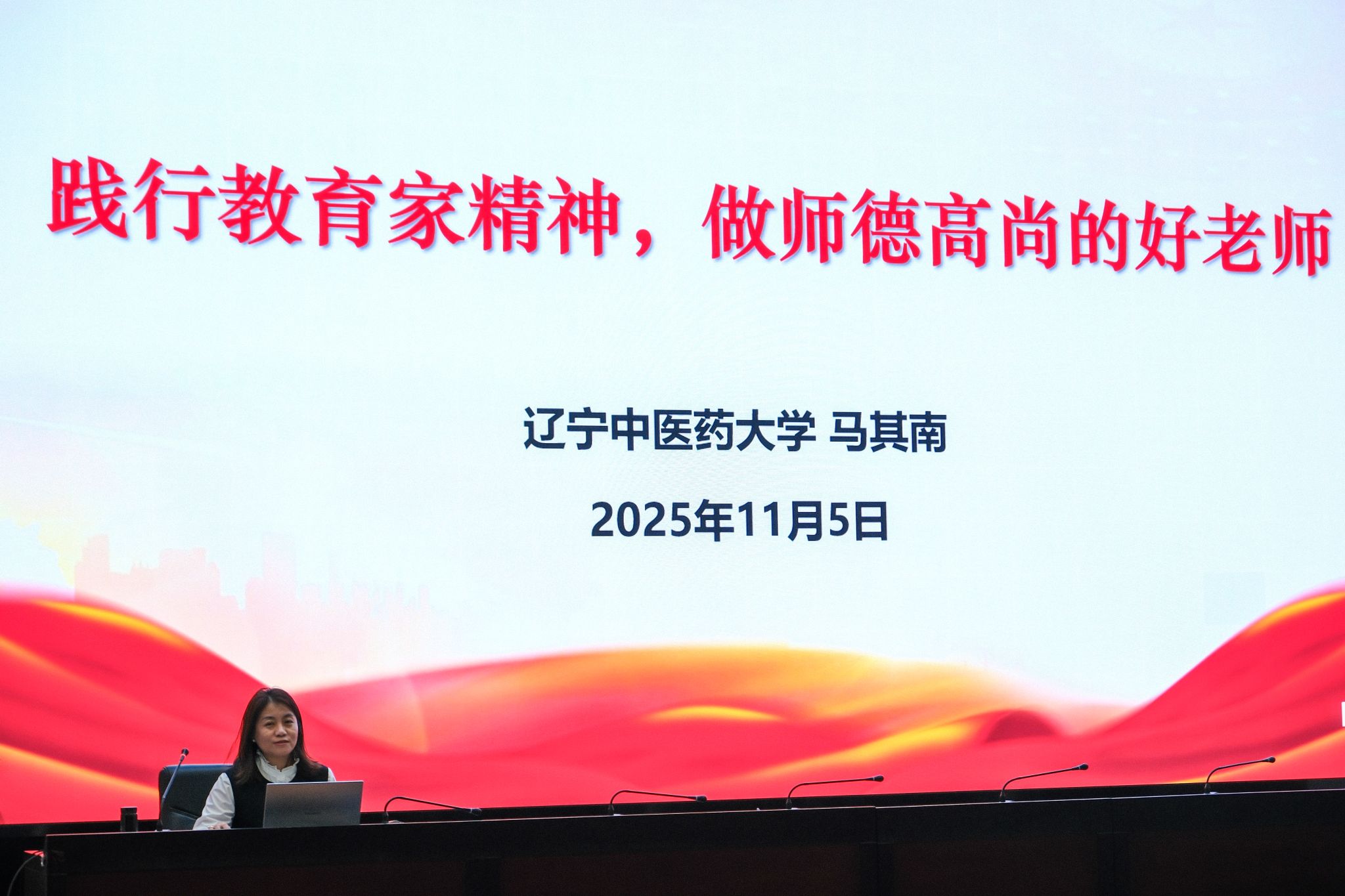 11月5日,我校青年教师能力提升系列培训第四场讲座在学术报告厅举办。本次讲座邀请了辽宁中医药大学马克思主义学院院长马其南教授,以《践行教育家精神 做师德高尚的好老师》为题,为青年教师带来了一场兼具理论深度与实践指导意义的精彩分享。