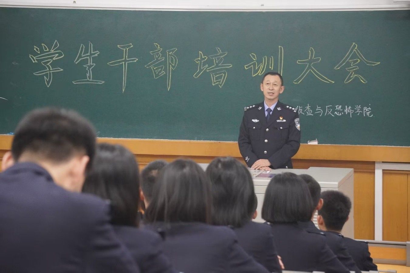 11月12日,侦查与反恐怖学院学生干部培训大会在北阶1教室召开。会议由学院分党委副书记刘彤大队长主持,张德智院长发表讲话,学院学管干部及全体学生干部共208人参加本次会议。