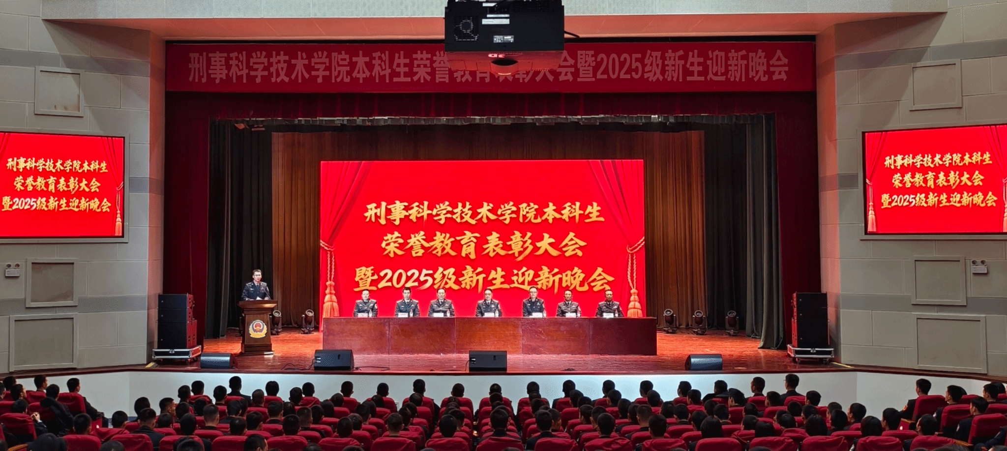 11月30日晚,刑事科学技术学院在学校礼堂隆重举行本科生荣誉表彰大会暨2025级新生迎新晚会。刑事科学技术学院班子成员、教师代表、全体学管干部及本科生代表共计900余人参加本次活动。