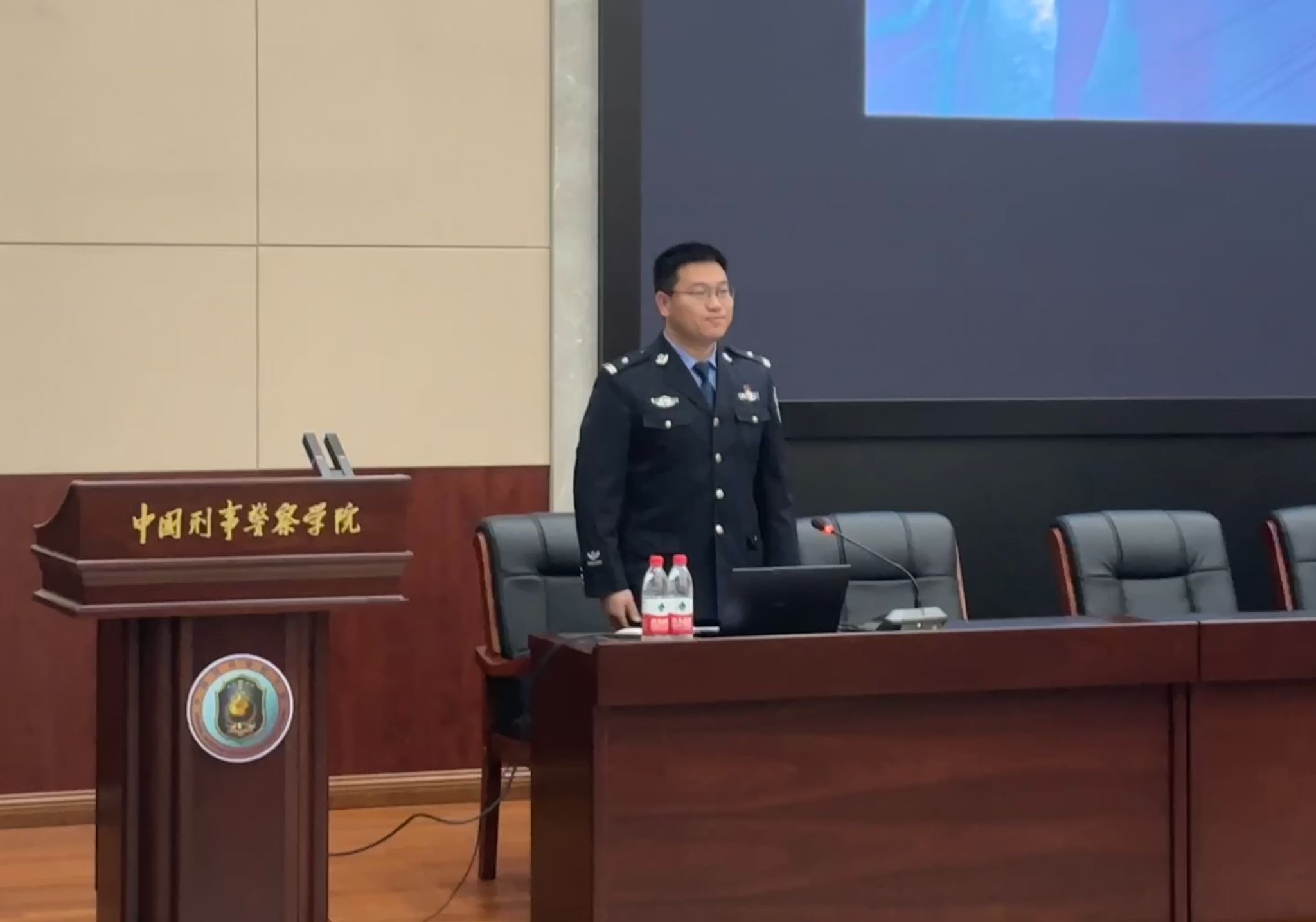 张晓东大队长系新疆警务实战及警犬专业教官,自2007年投身相关工作以来,长期奋战在反恐一线,荣立个人二等功1次、三等功5次,获评“查缉先锋”“新疆最美基层民警”等多项荣誉。张大队长从“新疆公安的忠诚体现”“个人在军营警营的磨砺成长”“人民警察在实战中的英勇无畏”等三个维度,用众多鲜活的实战案例,传递了忠诚履职、担当奉献的“藏蓝”精神,使广大师生深受感染,倍感振奋,增强了职业认同感与使命感,也加深了对这身“藏蓝”特殊意义的领悟和理解。