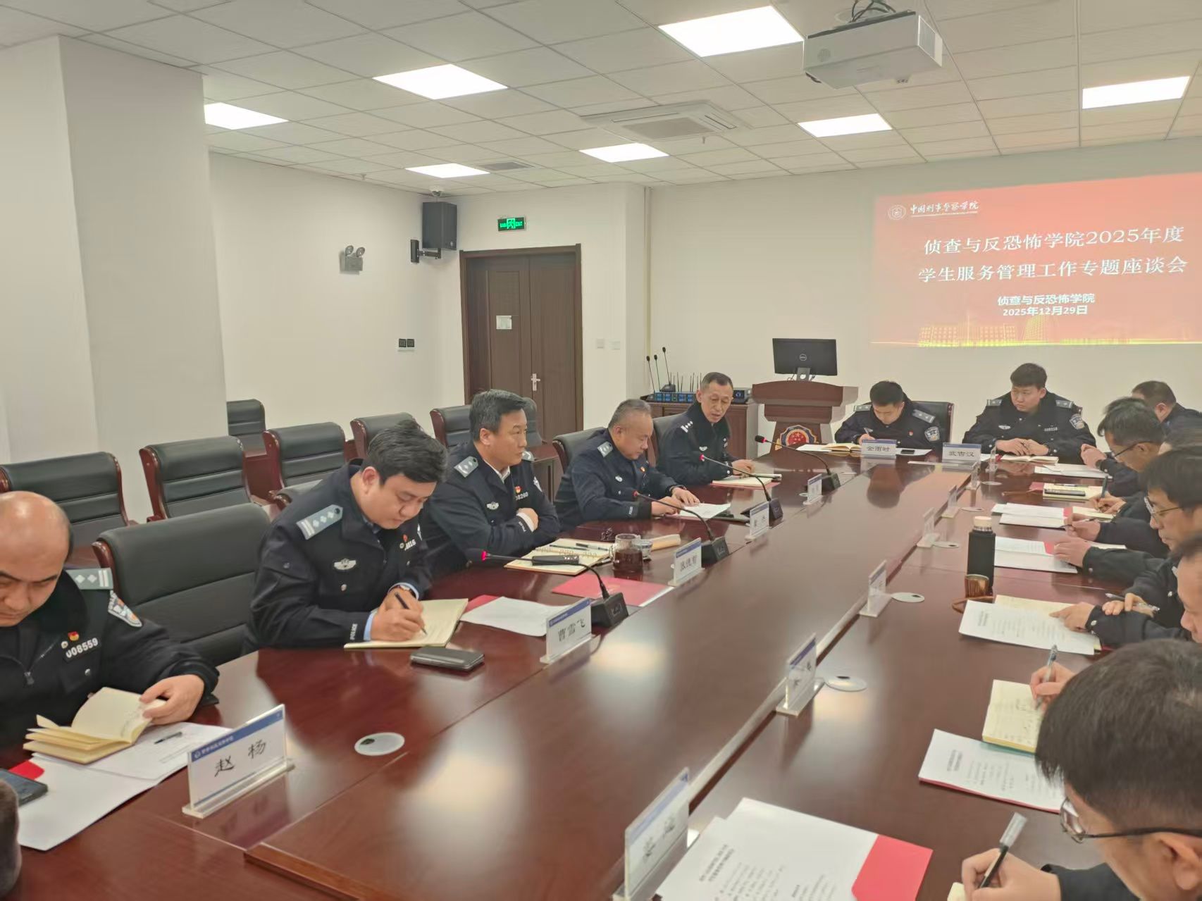 12月29日,侦查与反恐怖学院召开学生服务管理专题座谈会,学院领导、大队辅导员和教研室、实训中心主任参加座谈。座谈会以学生服务管理工作为主题,围绕学校主要领导对一封学生来信的批示要求展开学习讨论,总结年度学生服务管理工作,对2026年工作形成共识并进行部署。