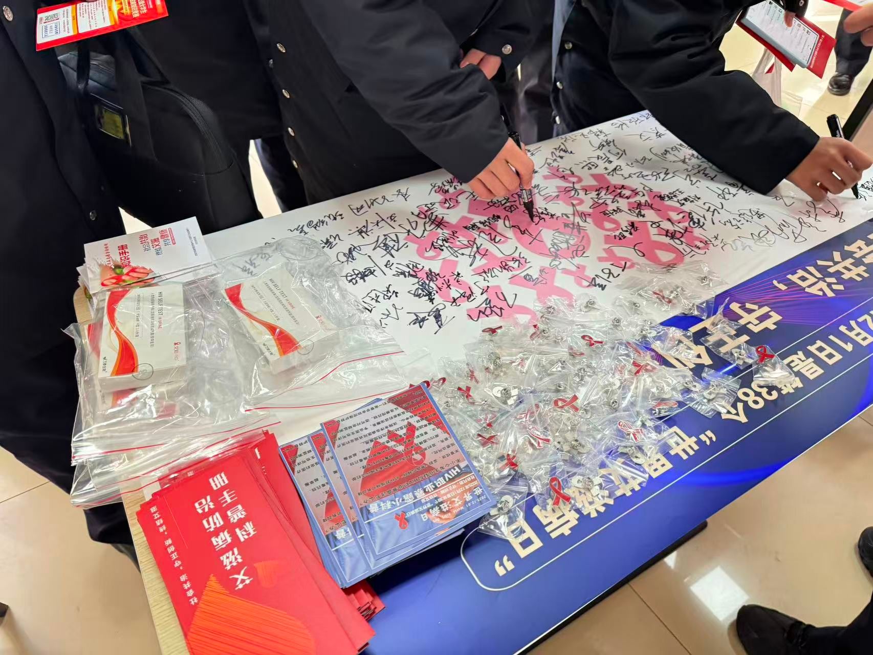 活动互动环节备受师生欢迎。大家纷纷在主题展板上郑重签下自己的名字,并亲手绘制象征关爱与希望的“红丝带”,以实际行动表达对艾滋病防治工作的支持。参与者可现场不记名自助领取检测试剂盒,并获赠纪念胸章一枚。据统计,本次线下宣传活动累计吸引了一千余名师生到场参与,现场气氛热烈,有效提升了师生对艾滋病的科学认知和自我防护意识。