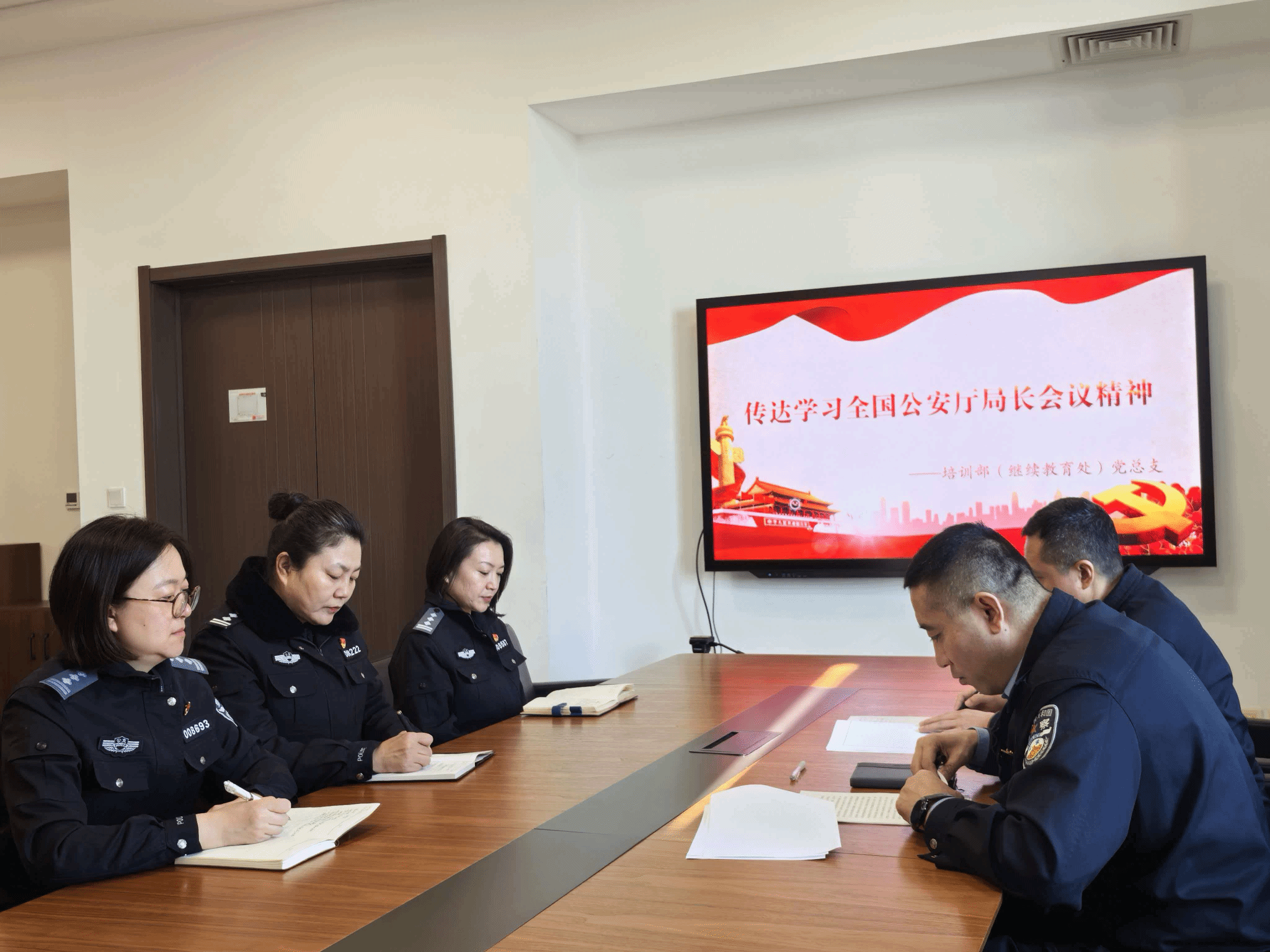 1月30日,培训部(继续教育处)召开会议传达学习全国公安厅局长会精神和学校党委(扩大)会议精神。会议强调,要以习近平新时代中国特色社会主义思想为指导,深入贯彻党的二十大和二十届历次全会精神,认真落实四中全会部署,坚定拥护“两个确立”、坚决做到“两个维护”,坚持以人民为中心,更好统筹发展和安全,坚定不移贯彻总体国家安全观,以政治建设为统领,以完善公安机关职能体系为关键,以推进公安机关新质战斗力提升工程为牵引,以法治公安建设为支撑,以过硬队伍建设为保障,忠诚履职、担当实干,奋力推进公安工作现代化,为实现“十五五”良好开局贡献公安力量。