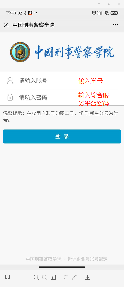 步骤一 输入学工号,综合服务平台密码点击登陆