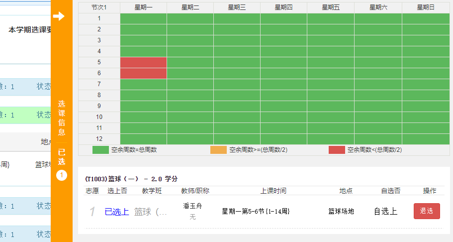 7.点击橙色侧边栏,可查看自己课表整体的选课情况。